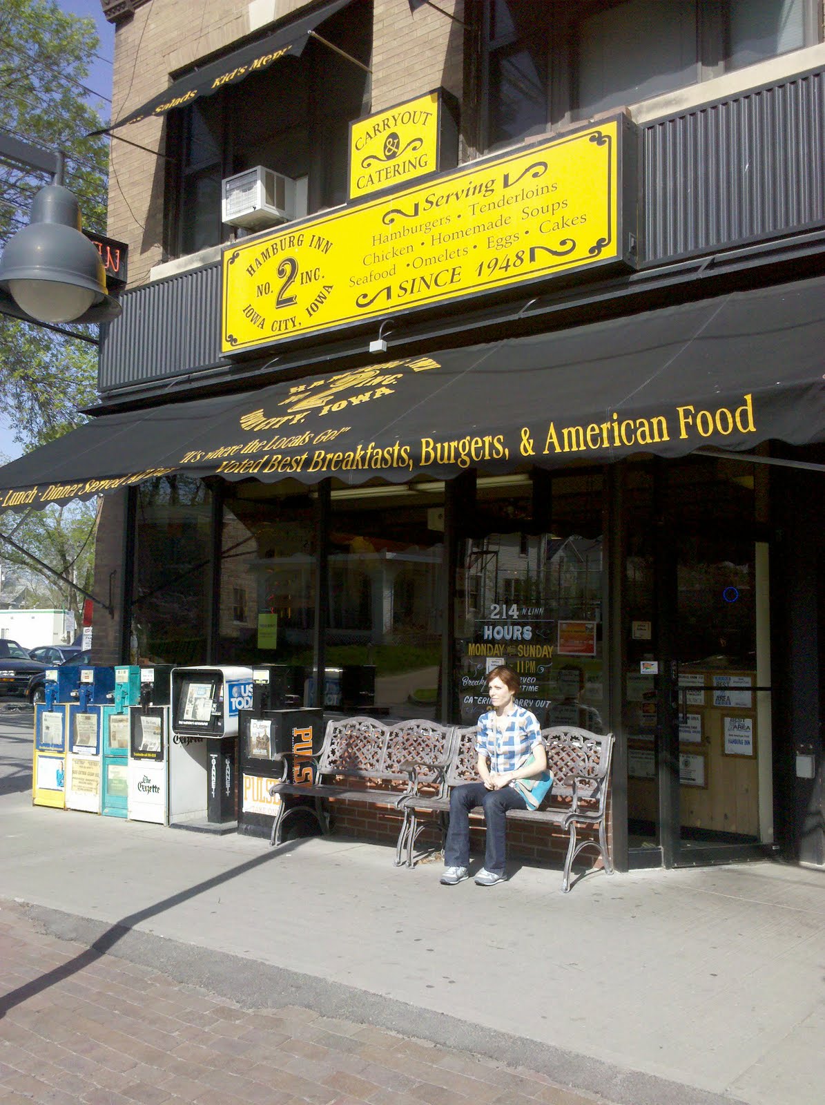Obamer and Clinton ate there too, but I didn't see their booths. During elections, Hamburg actually holds a coffee bean caucus in which diners vote for the candidate of their choice by dropping a coffee bean in a jar. (Excuse their misuse of the word caucus.) Iowa City is obviously a pretty liberal town with their co-ops and DIY stores, so of course Obama won the last one. It's like living in a giant happy bubble of hipsters, starving authors, and football fanatics... and even a few hipster football fans working on their first novel.
